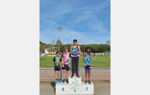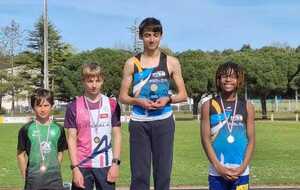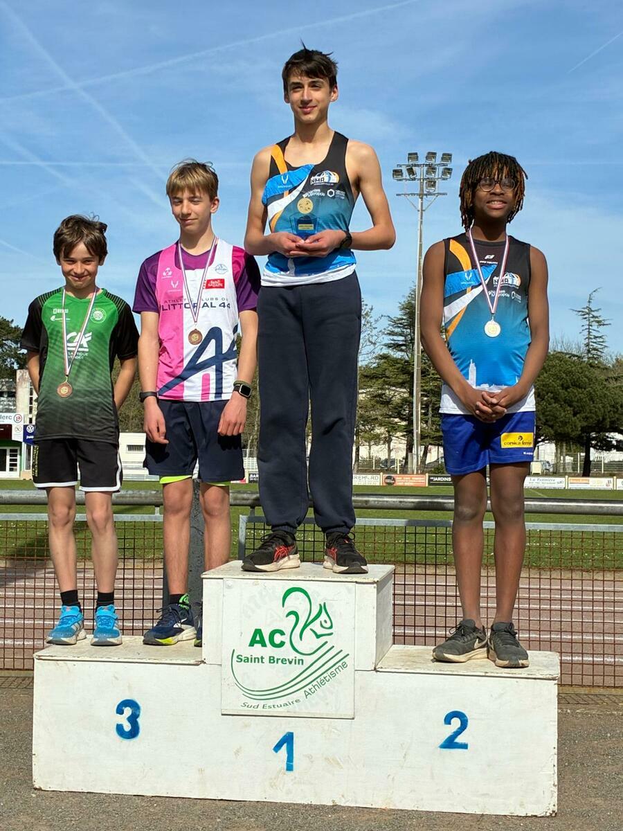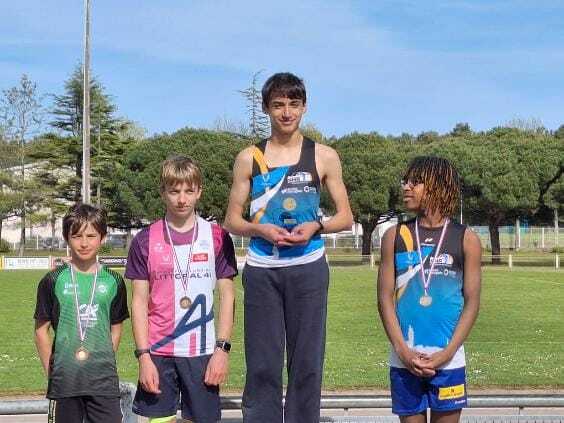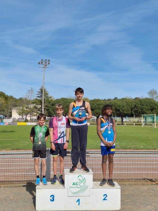 Chez Benjamins, victoire d’Evan HERVOUET qui monte sur la plus haute marche du podium avec 121 points grâce à un 5m09 en longueur, un 6’’90 sur 50m et un 34m46 au javelot ! Une médaille d’or bien méritée !